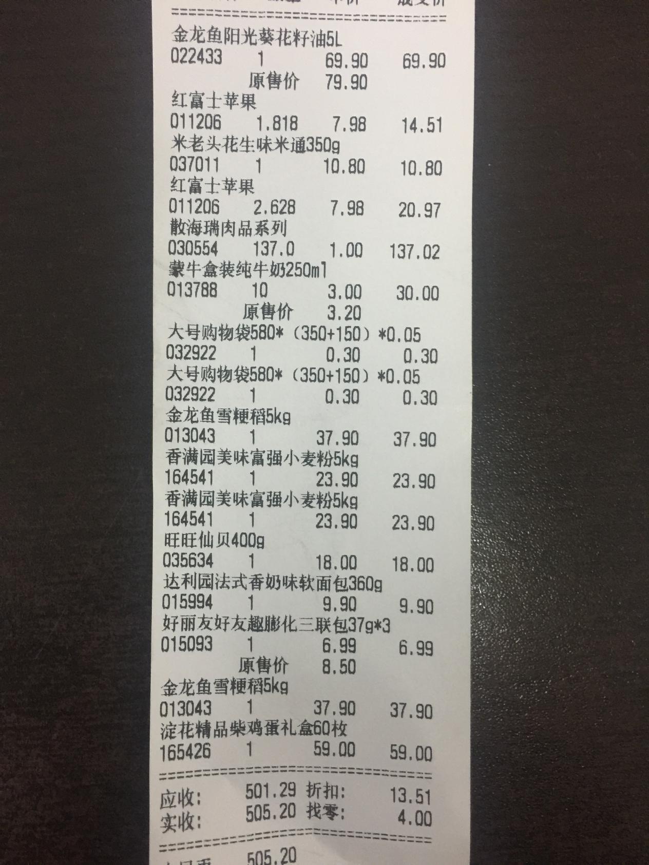资源与环境系青年志愿者分会于2016年15月5日前往保定市东小庄村看望因意外伤害致残辍学的张宏伟家中,此活动所使用善款为上次白沟剩余善款604.8元。以下是物品清单及费用票据: