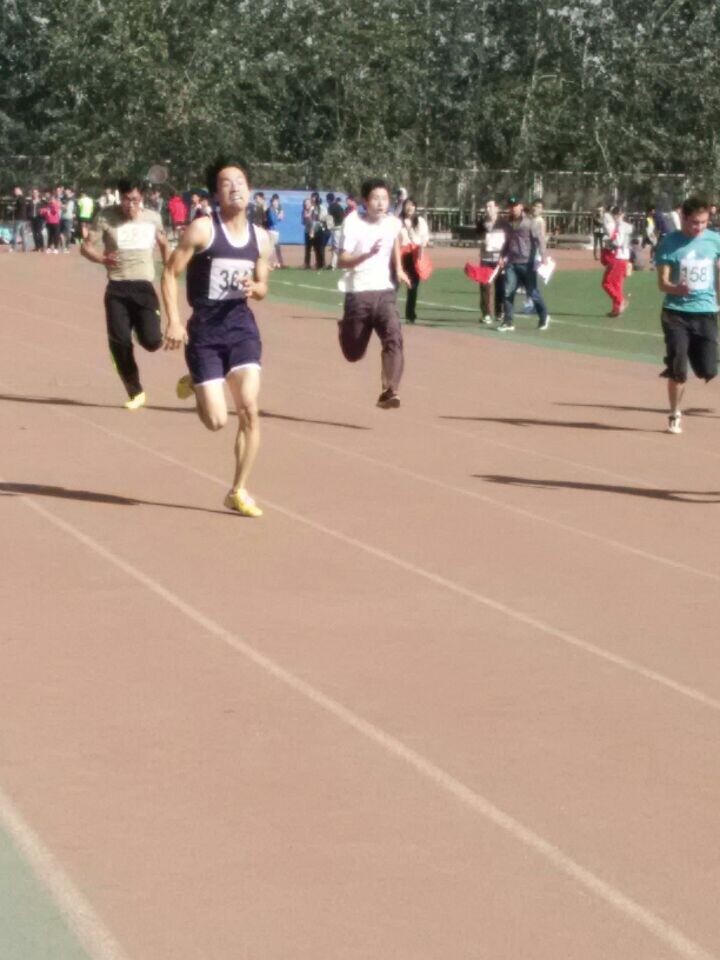 例如我系张文龙同学取得男子一百米第一,二百米第一的好成绩。同时由张文龙、杨浩楠、聂军、韩道松一起参加的4×100米接力,4×400米接力赛,也取得了第一名的好成绩。