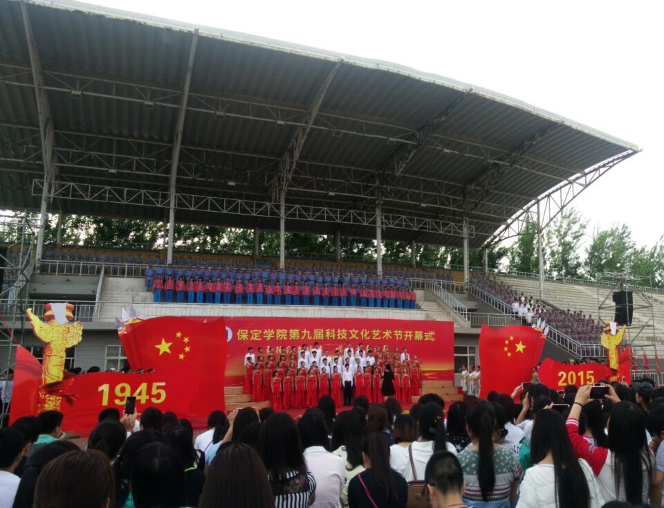 保定学院第九届科技文化艺术节开幕式于2015年5月13日下午开始,资源与环境系参加了 "弘扬红色旋律 唱响青春之歌"纪念抗日战争胜利70周年的主题歌会,并承办了"指点星河 探秘宇宙"的知识竞赛。