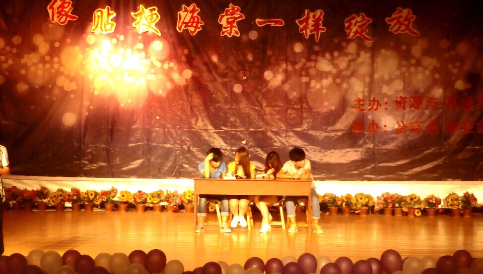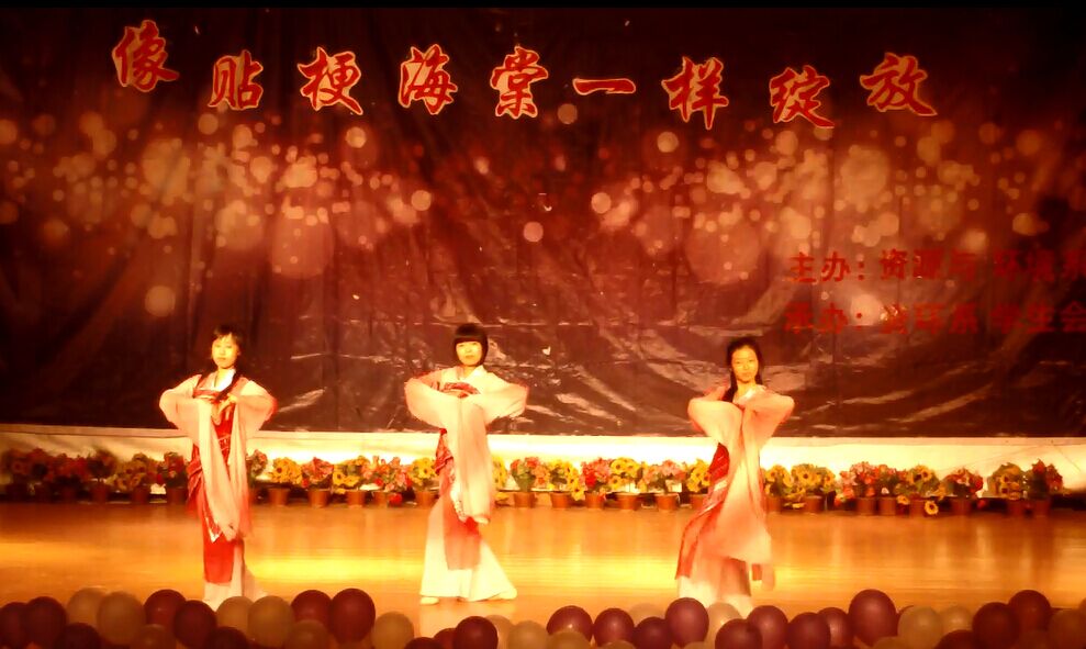 将近两个小时的送老晚会结束了,学姐学长们带着我们的祝福毕业了,同样,也留给我们深深的思考,我们也有毕业的那天,等到那天,我们也要像这些学姐学长一样,有自己的目标,理想,就像晚会的主题一样,要像贴梗海棠一样绽放,永远没有悲伤......