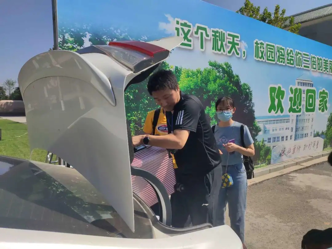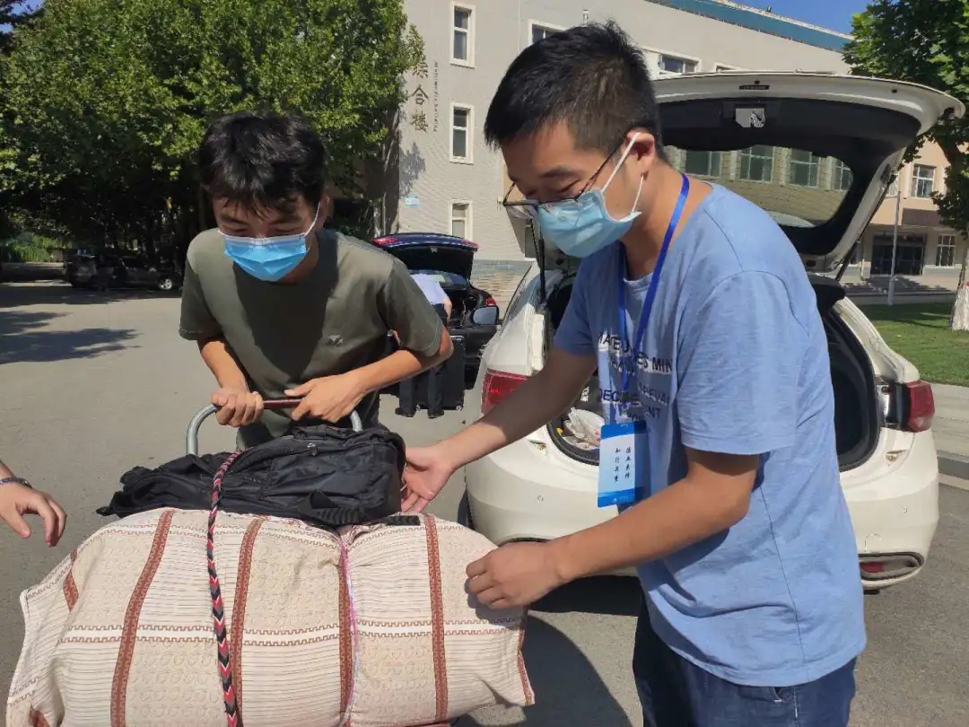 由于疫情防控的原因,送学生的私家车不准驶入校园。学生们在出示核酸检测合格报告和健康绿码之后,带着大大小小的行李进入校园。从学校大门口到学生宿舍,有一公里多的路程。尽管两辆大巴、三辆电瓶车不间断帮学生运送行李但仍旧会有一些学生在大门口等待。pp电子官方网站入口党总支组织党员志愿服务活动,号召党员教师和青年教师积极参与。同时,已返校的学生党员也参与了志愿服务。