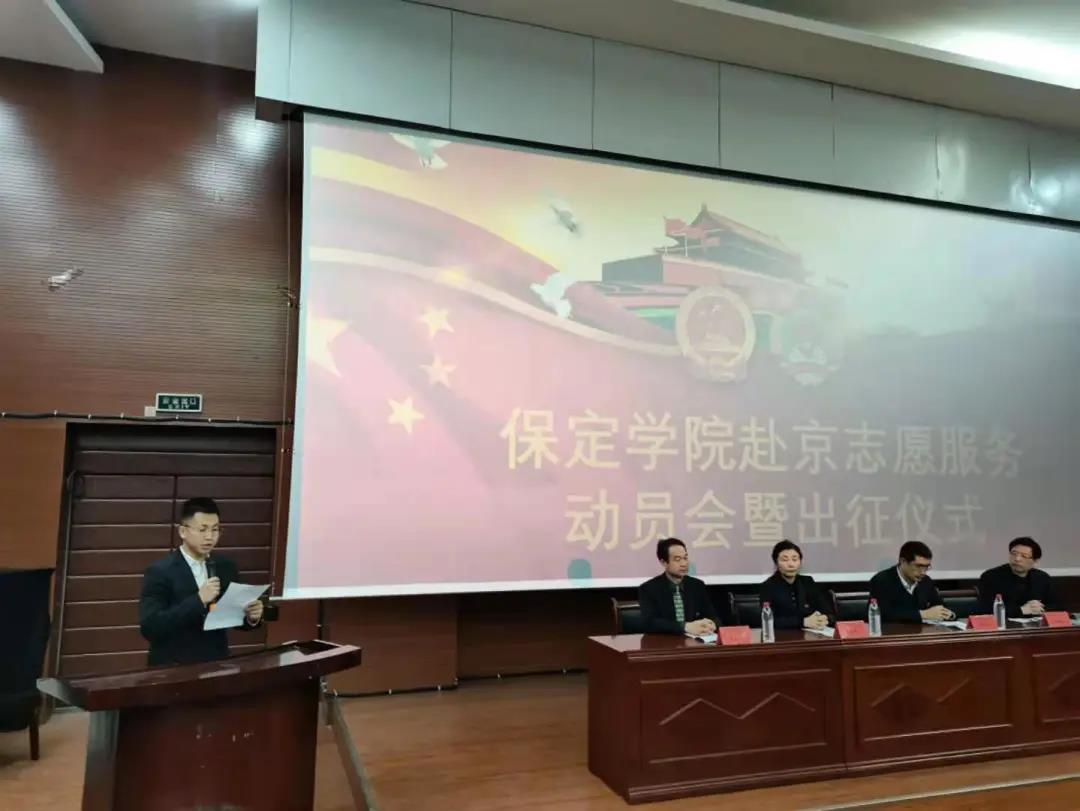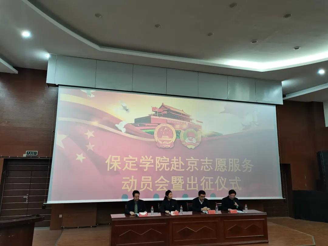 保定学院开展的赴京志愿活动动员出征大会于2020年12月24日举行。参加此次会议的有保定学院学生处处长郝学武处长;pp电子官方网站入口翟进义书记,张振威院长;北京西直门宾馆马淑英书记,以及保定学院全体学生志愿服务人员。