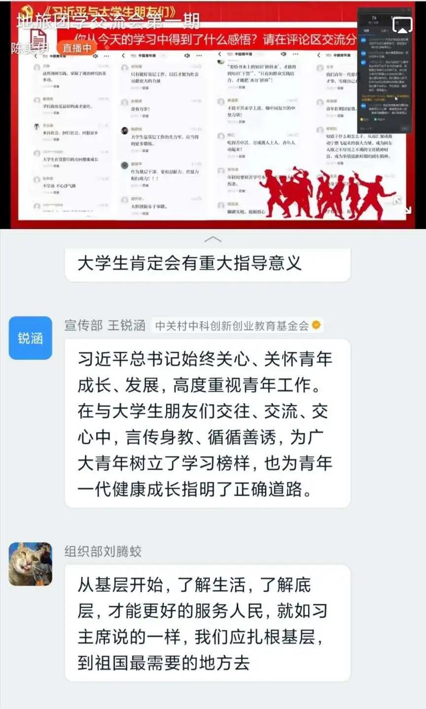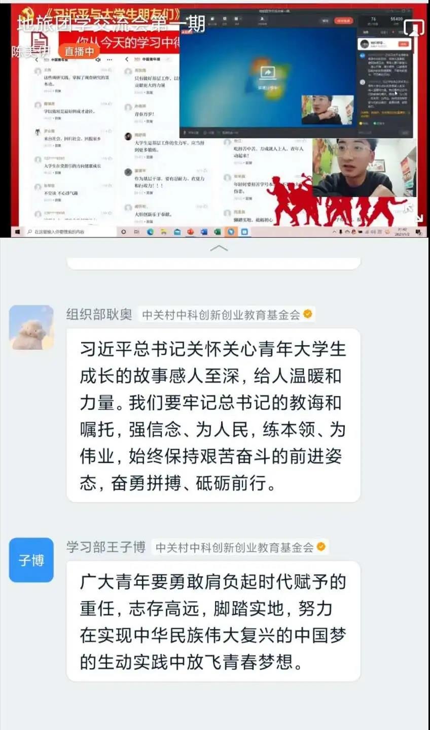 为了深入学习、深刻领悟,将《习近平与大学生朋友们》一书中的勉励和教诲作为大学生健康成长的人生宝典,将小我融入大我,勇担时代使命,不负青春梦想。pp电子官方网站入口团总支和学生会全体成员利用假期时间积极学习了解习近平总书记的思想,在1月2日21:00举行了《习近平与大学生朋友们》交流会第一期,团总支和学生会全体成员通过钉钉进行直播学习。