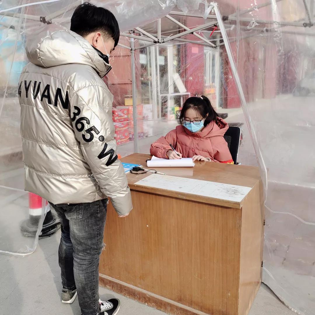 服务内容:帮社区工作人员进行电子信息录入,帮忙扫码测温。
