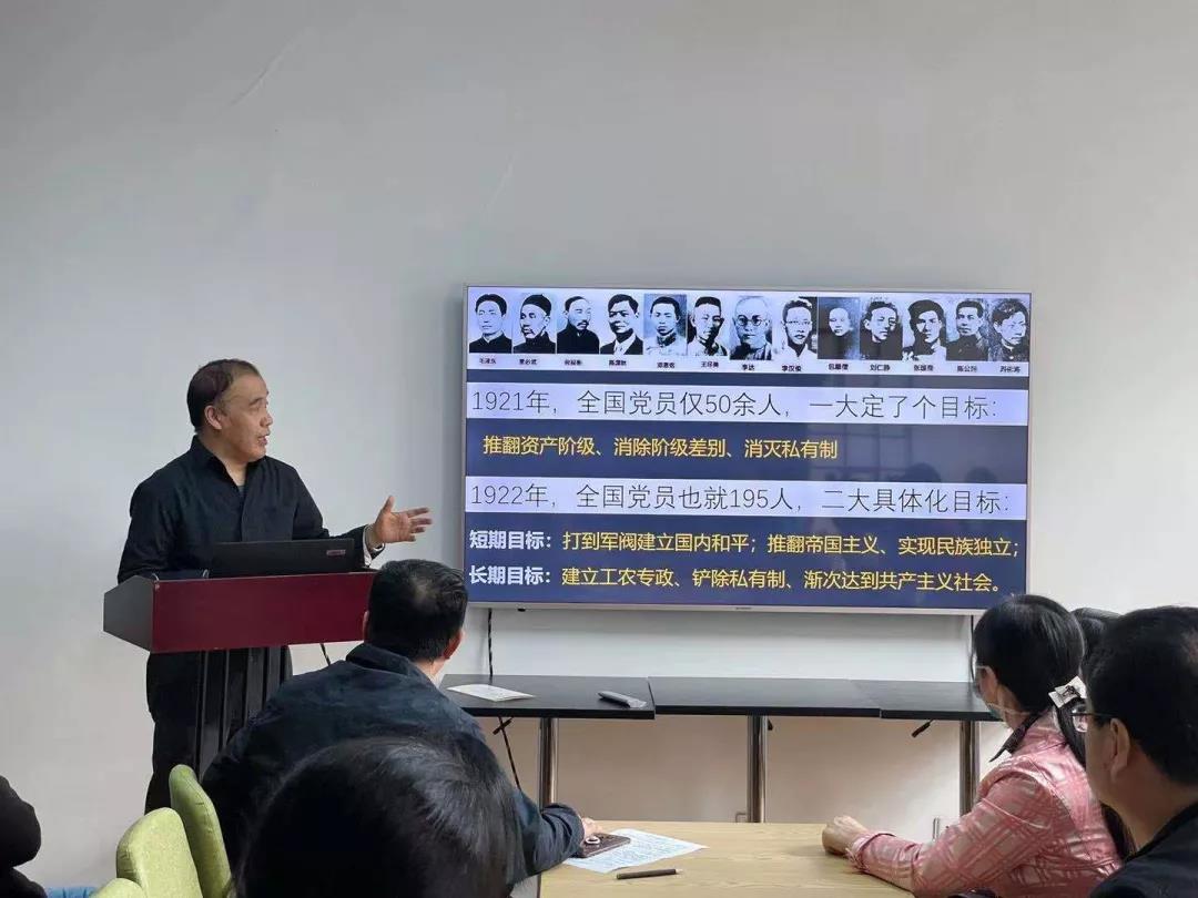韩少华副教授以近代中国的百年沉沦为背景,为大家介绍了中国共产党发展的艰辛,1921年,全国党员仅50余人,却有胸怀天下、救国救民的大志向。在救国救民的崇高志向下,他们不畏困难,抗住压力,没有丝毫利己之心,一腔热情与抱负均双手捧上,献给他们热爱的祖国与人民。志向之坚定,构想之宏大,吸引了大批同样抱负的有志之士加入,一批批共产党员冒着生命危险维护着自己的奋斗目标、人生理想,中国共产党一心为国、一心为民的信念从未更改。