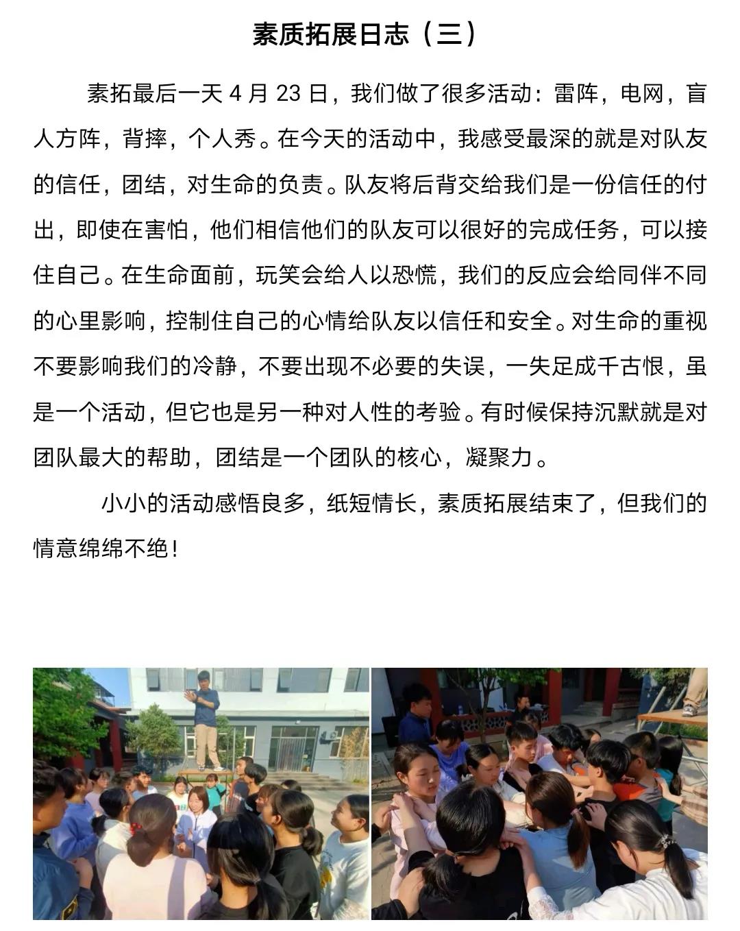 春风拂寒意,四月百花开。2021年4月21pp电子官方网站入口20级全体学生在老师和教练团的带领下,进行了为期三天三夜的易县素质拓展之旅 。在这三天内,同学们对每一个活动都全身心的去参与,也学到了很多,亲临实地研学活动让每一个同学都学到了课堂上所接触不到的知识。