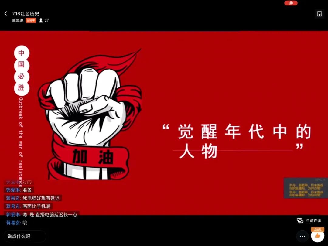 在红色历史的课堂上,老师带领同学们走进了百年前中国人民的觉醒的年代。“少年智则国智,少年富则国富,少年强则国强,少年独立则国独立,少年自由则国自由。”要引导孩子多多阅读红色经典,从红色文化中激发积极向上的热情,努力去拥抱自己的人生;鼓励孩子多思、善思、敢思,要具有质疑的勇气和能力,不断探索,砥砺前行。