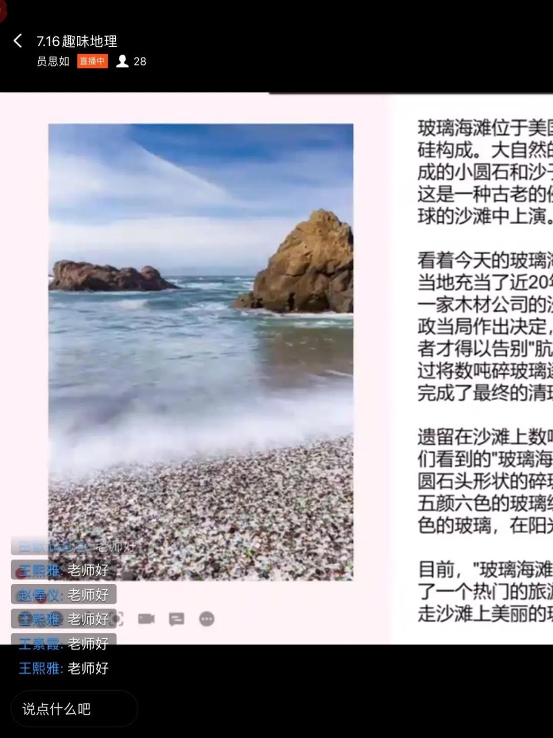 “读万卷书,不如行万里路。”今天的趣味地理课,老师带领大家来到了一片片美轮美奂、却又拥有自己独有特色的海滩。使同学们足不出户就欣赏到了来自世界各地的美景。在欣赏美景的同时,老师告诉了同学们这些沙滩是如何形成的、为什么海水的颜色有绿色的有蓝色的?同学们纷纷地感叹于大自然的神奇之处。