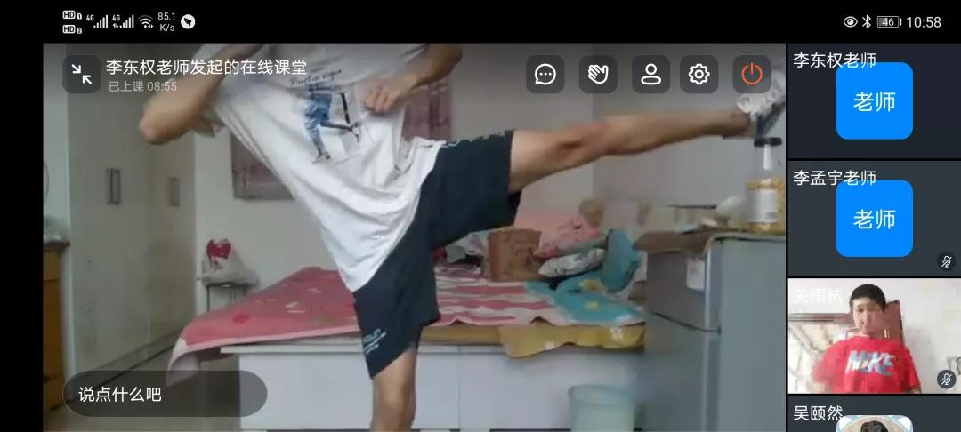毛泽东曾说过:“身体是革命的本钱。”拥有强健的体魄是同学们茁壮成长的基础。擒敌拳是一项既传统又新颖的课程,它既传承了武术又融合了现代元素。今天的擒敌拳课上,老师带领同学们复习了之前学过的几套动作,巩固了学习成果。虽然隔着屏幕,但依然能感受到同学们的学习热情。