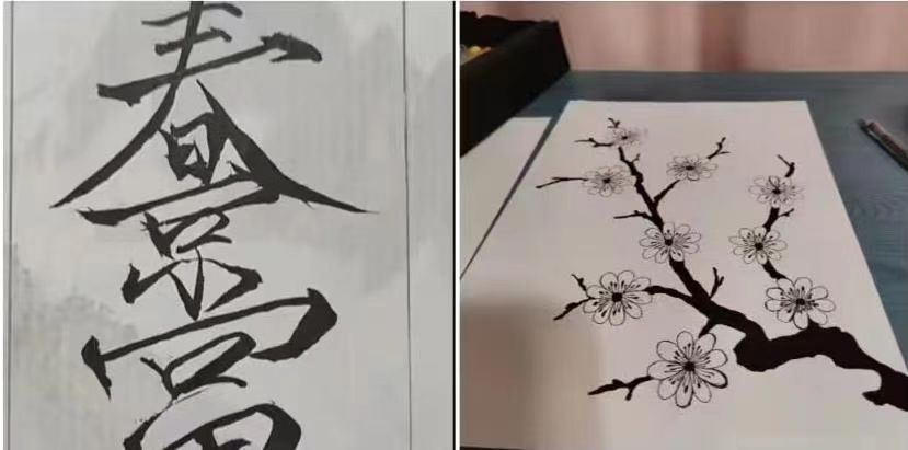 笔墨书香,书情画意。在不擅长的领域与亲切的人一起学习,记录一下第一次学习写毛笔字,不擅长但是很开心,第一次用碳素笔画画,大寒节气那天的《九九消寒图》