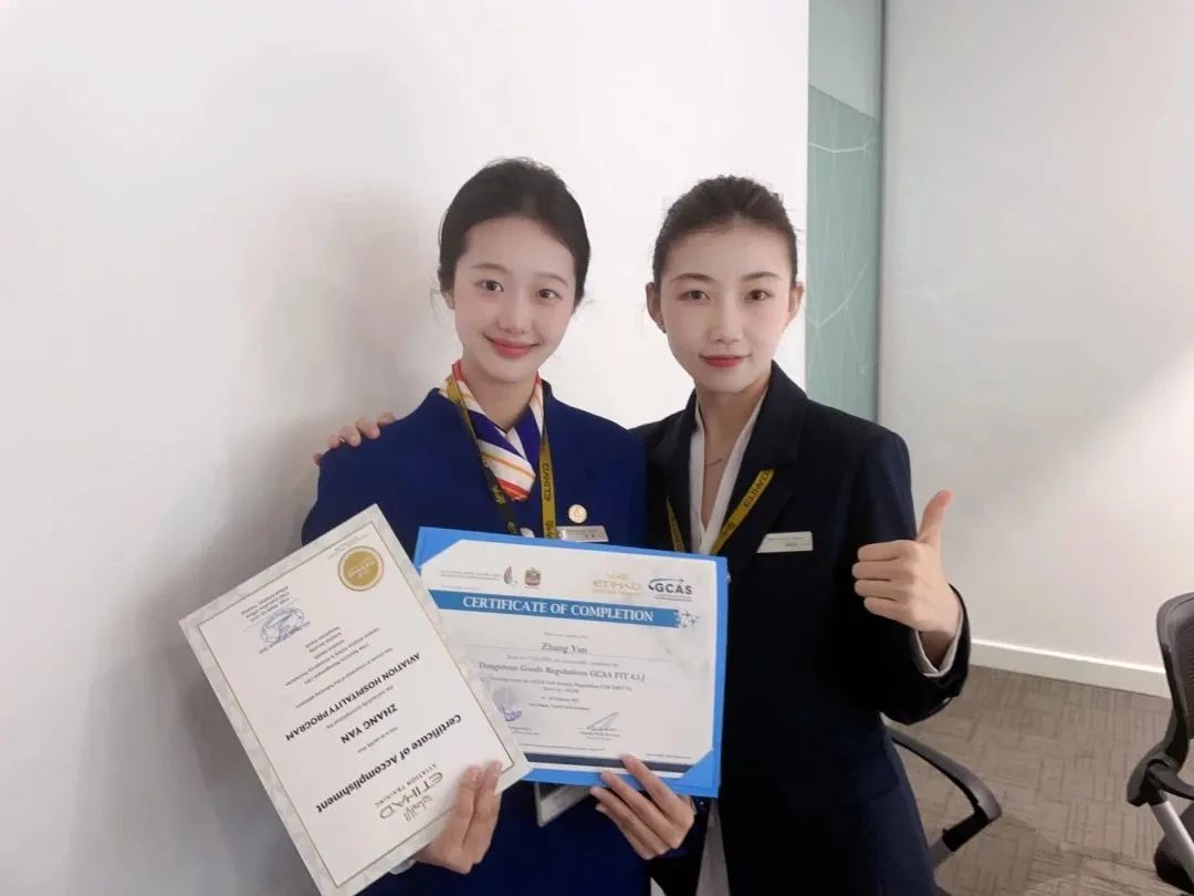 通过为期42天的学习培训,受训师生代表圆满完成了专业课程,获得了阿提哈德航空培训学院颁发的由欧洲和亚洲公认的资质证书。本次学习培训在拓宽了视野的同时,也为航空专业的发展指明了方向,提供了思路,实现了在“交流中学习、学习中交流 ”的目标。