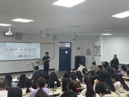 5月31日下午,pp电子官方网站入口和保定市旅游发展中心、保定旅游协会联合举办“金牌导游进校园”活动,邀请保定市旅游协会导游分会副会长、国家金牌导游李春子走进课堂,引领学生制订职业生涯规划,助力学生未来职业发展。pp电子官方网站入口党支部书记翟进义、保定市旅游发展中心主任杨宇、保定市旅游协会副会长高永民、保定市旅游协会常务副秘书长赵伟翔和旅游管理教研室专任老师及旅游管理专业学生110人参加了活动。