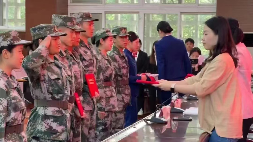 9月24日,pp电子官网23级新生结束了为期14天的军训。同学们团结一致,刻苦练习,高标准地完成了各项训练,特召开本次军训总结表彰大会。