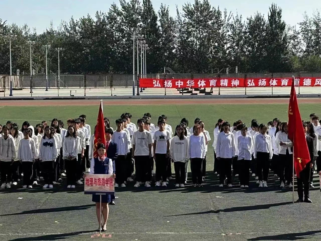 彩旗飞扬,操场上一派紧张热烈的欢腾景象。跑道上稳健的步伐奏响出动人的乐章,翩飞起舞的身影是梦想的翅膀,运动员们与赛道碰撞出激情的火花,努力拼搏的身影是写在青春篇章里的诗行。