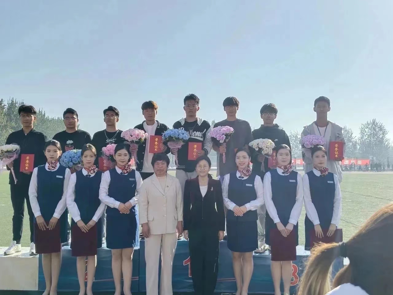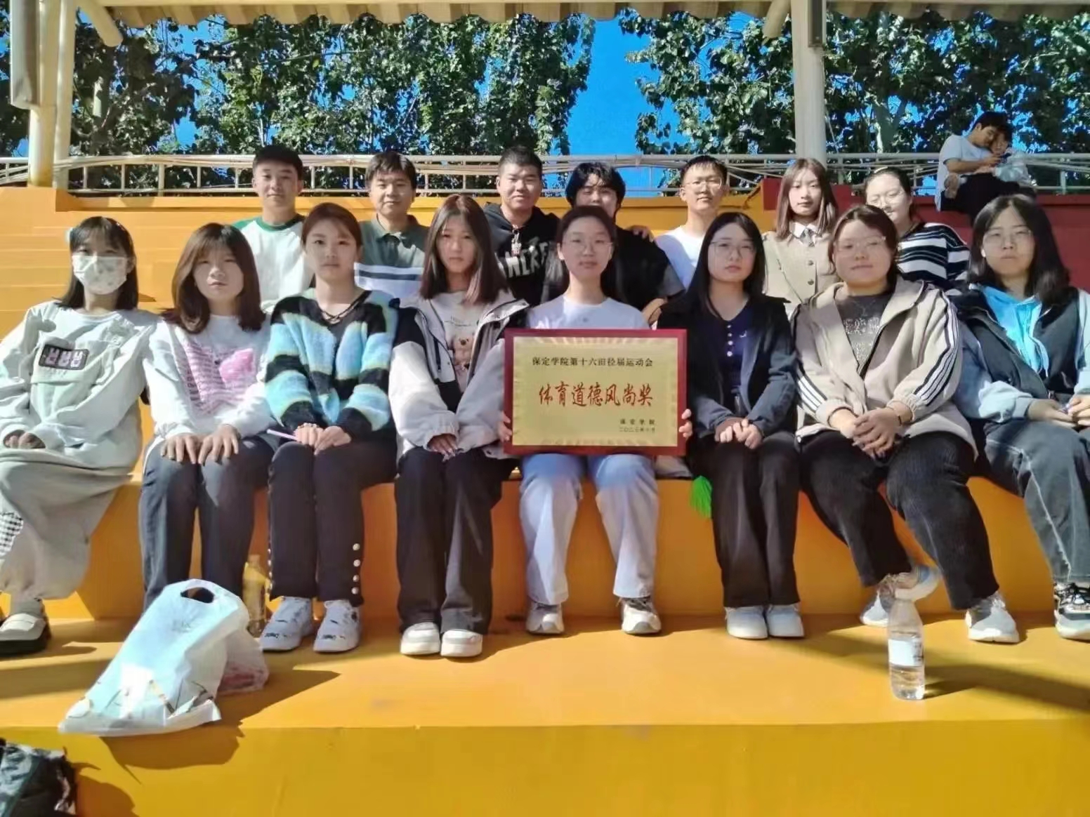 运动场下,为这次运动会顺利开展,学院的领导老师对运动员们提供各种帮助;不畏炎热,团总支、学生会工作人员以及道德风尚裁判员等辛勤付出,观众在场下激情的喝彩,为运动员们创造了良好的比赛环境。
