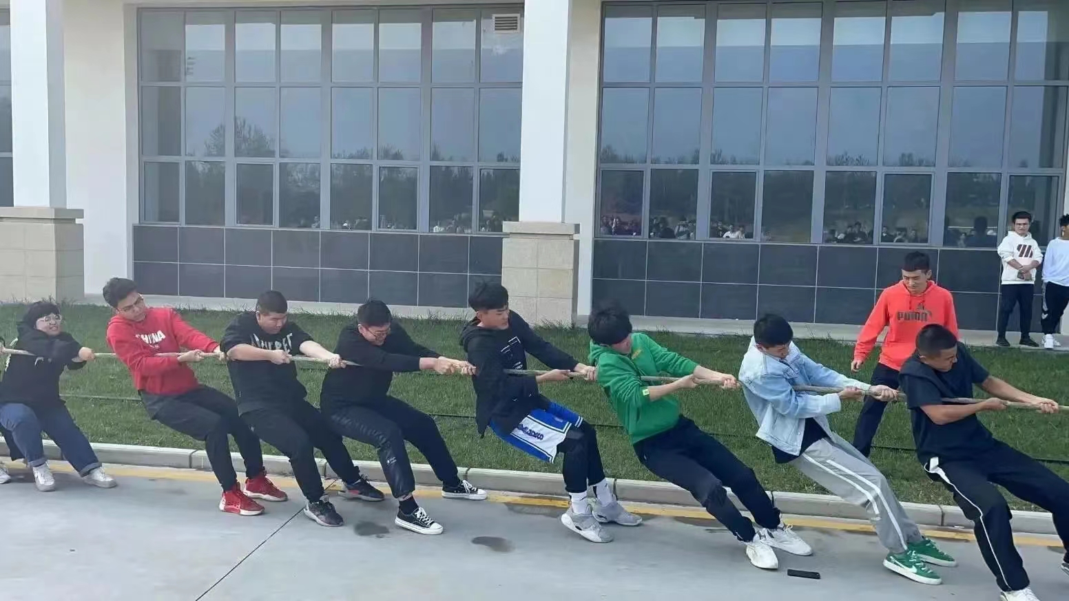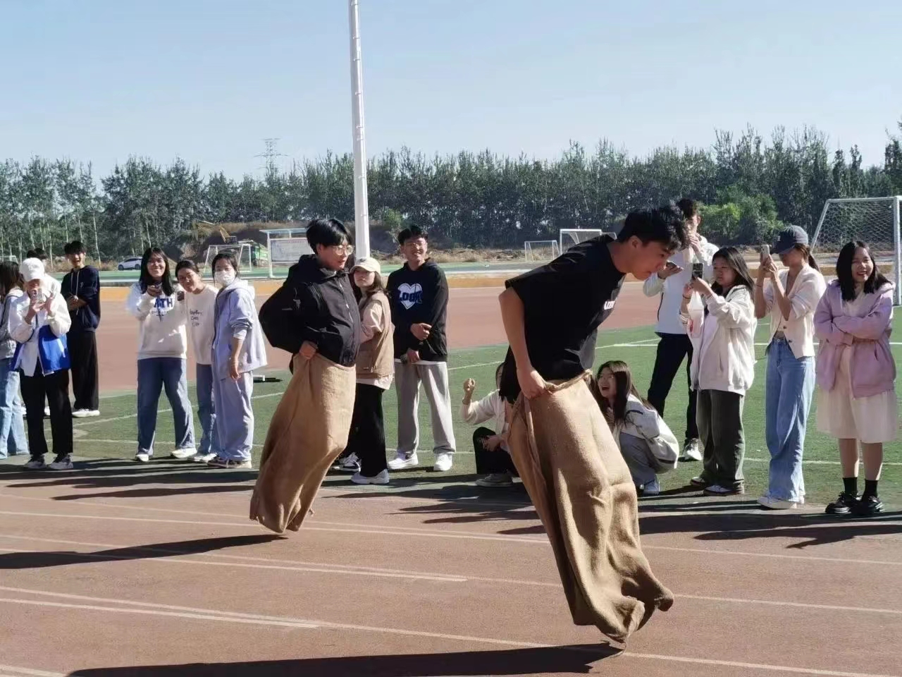薄汗透衣衫, 清风绕指缠,云天收秋色,学子展风采, 汗水与喜悦交织共融,拼搏与感动同频共振。