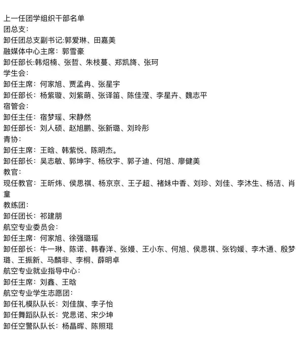 新老团学组织干部名单