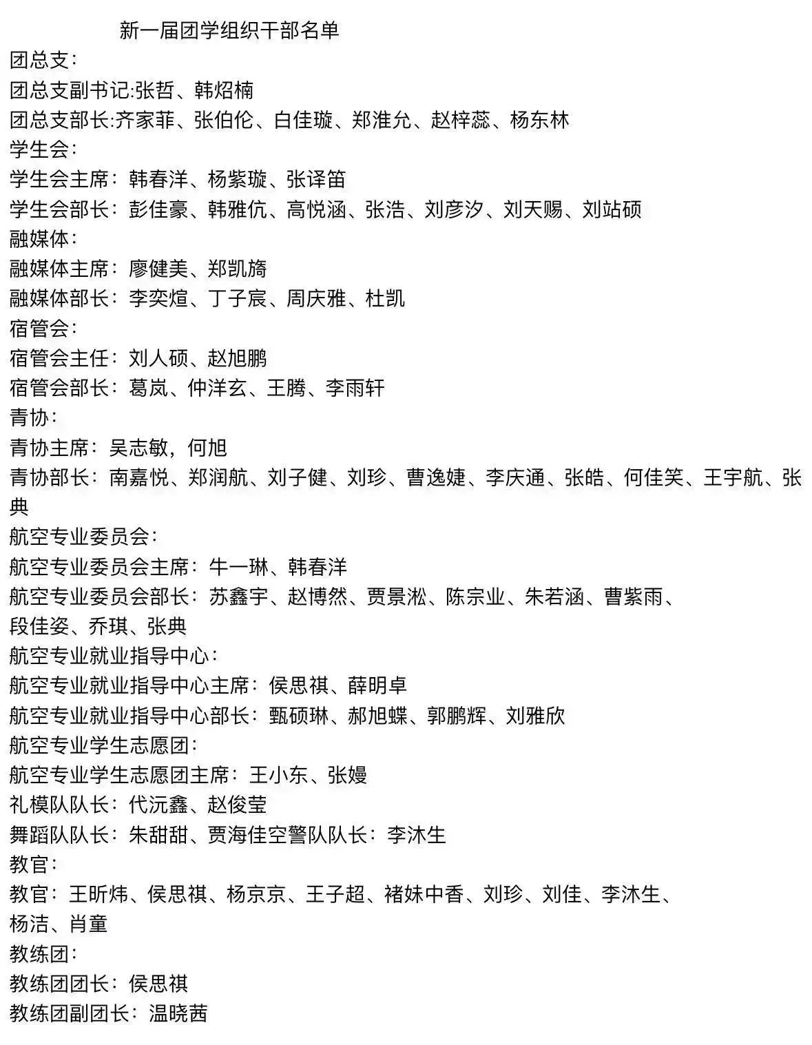 新一届航空专业委员会主席,就业指导中心主席,学生志愿团队长及各部门部长