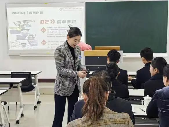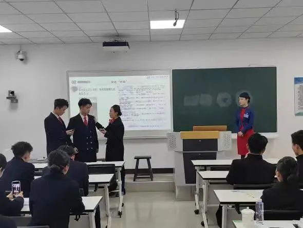 在随后的主题班会环节比赛中,辅导员老师们充分展现出对学生的深入了解和关心。他们不仅熟知学生的思维方式,更能预见并解决学生在学习和生活中可能遇到的问题。老师们的主题班会内容及形式各具特色。有的以革命题材的影视短片和习近平主席的寄语为切入点,将“红色教育”主题展开,激发学生的豪迈之心,勉励他们坚定自立自强信念;有的通过角色扮演的方式,学生们沉浸式体验了不同职业的特点,从而认识到正确的择业观与高质量的就业息息相关;有的通过真实的案例展示和师生情景模拟,让学生们切身体会到电信诈骗的严重性,深刻认识到“防诈反诈”的重要性。
