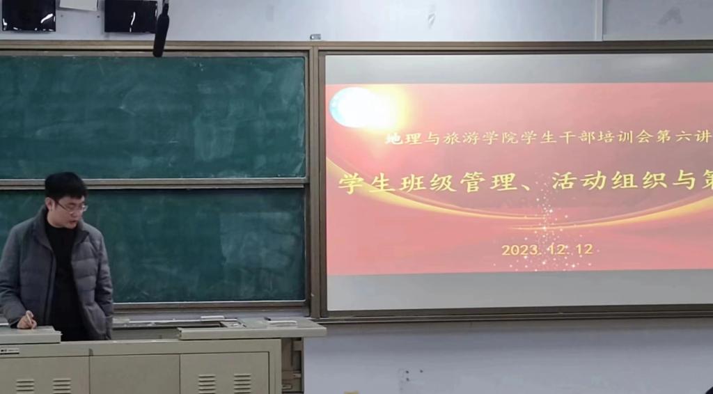 学院辅导员何诚围绕“学生班级管理、活动组织与策划”这一主题在本次学生干部培训会中讲述了作为一名学生干部应该如何在班级中有效地管理以及如何高效组织开展活动。