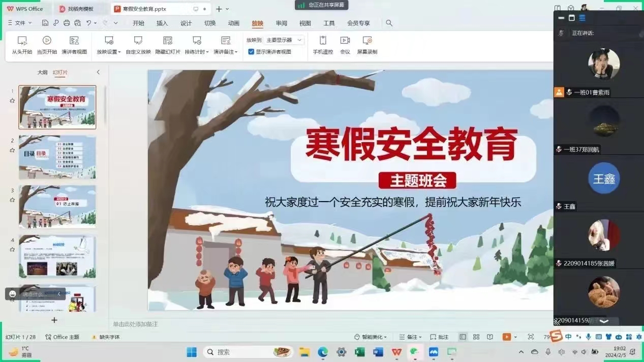 2024年2月4日pp电子官方网站入口23级航空服务艺术与管理二班为增强学生寒假安全意识,保障学生的人身财产安全,提高学生自我防范能力,由班长在腾讯会议上召开线上会议,引导同学们过一个快乐、安全、有意义的寒假。