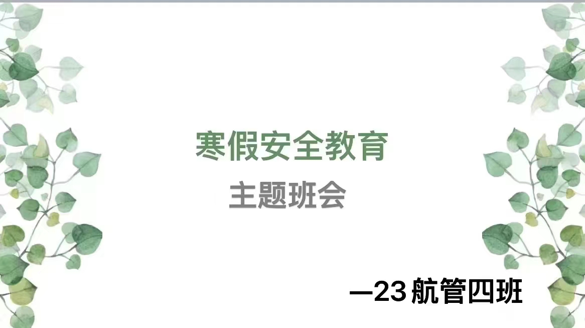 23级航管四班通过腾讯会议的方式开展了寒假安全主题班会,旨在提醒同学们寒假期间安全的重要性。在这段时间里,天气寒冷,气温急剧下降,结冰雪等天气现象增多,容易引发意外伤害,所以加强安全意识显得尤为重要。通过开展安全主题班会,希望能够提高学生对安全问题的重视程度,增强他们的自我保护意识和应对突发事件的能力。其中重点强调了饮食安全,网络信息安全,交通安全等,并且督促同学们进行社会实践。