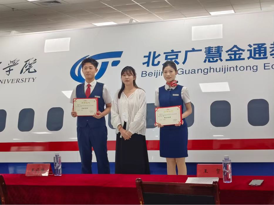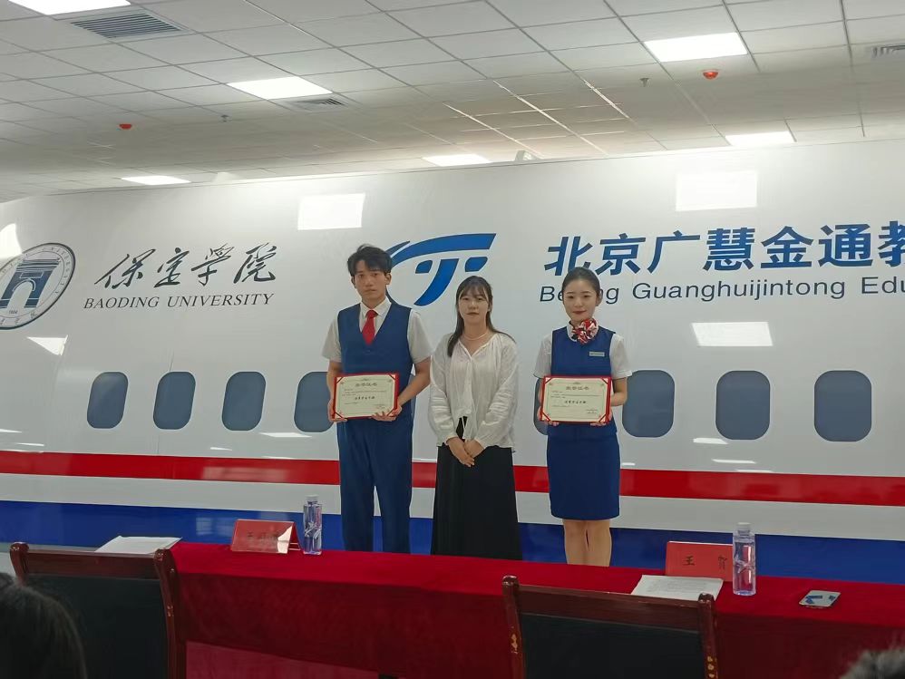 侯思祺宣读了2023——2024学年航空专业就业指导中心的表彰决定。希望受到表彰的先进个人和集体再接再厉,充分发挥榜样引领作用,取得更大的进步,为专业和学院发展助力。在热烈的掌声中,获奖个人和集体代表在模拟舱前领奖。