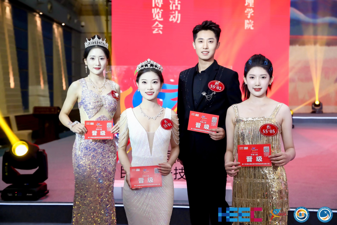 本环节,以突出民航学子专业形象,服务礼仪规范为重点考察内容。我校参赛队通过团体礼服走秀进行形象展示,同时穿插5名选手进行拉丁舞单独展示。