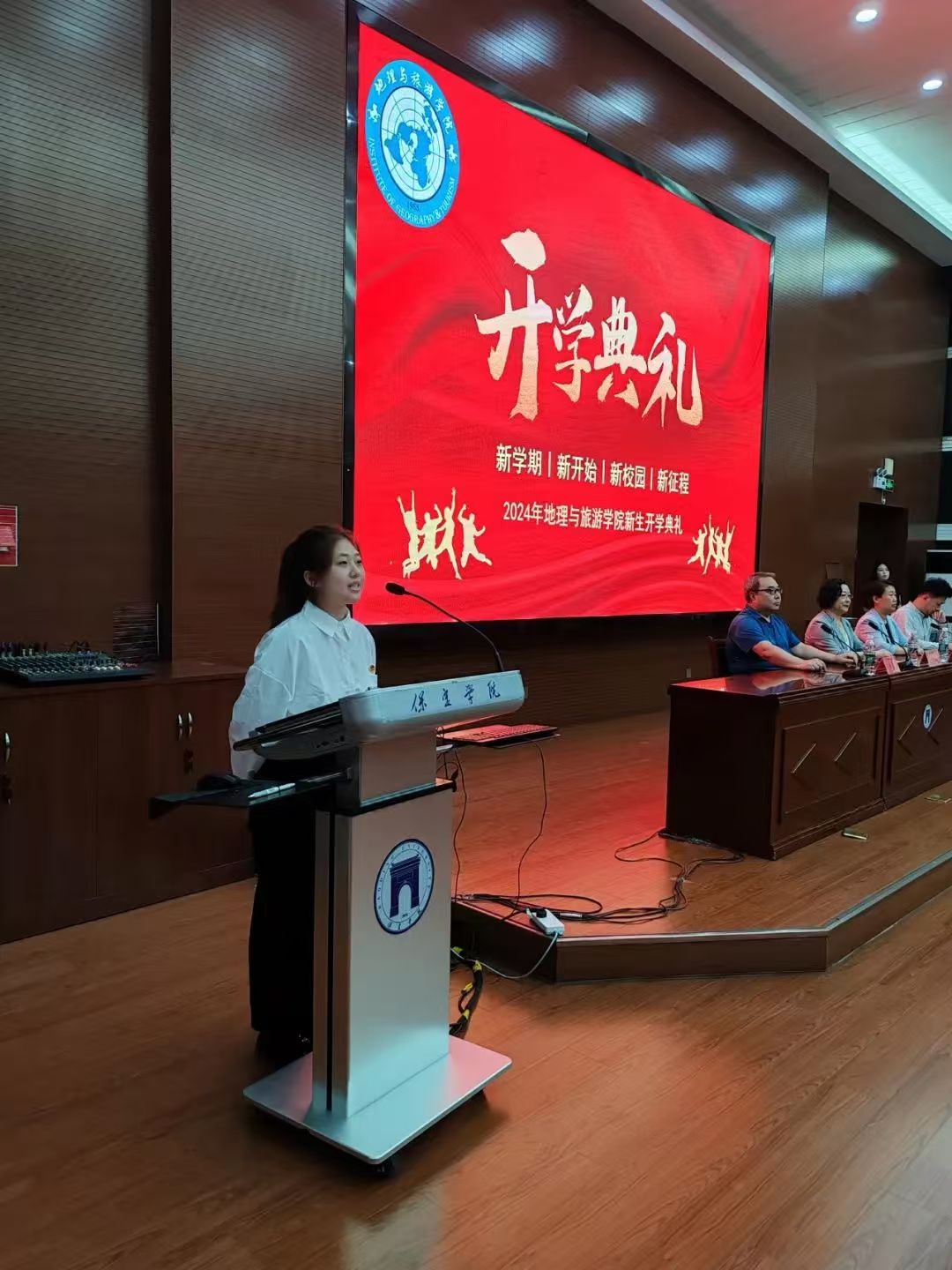 在校生代表申瑜涛同学对新生献上最诚挚的祝福,并希望在校学生能够勤奋好学,积极进取,为将来立足于职业,奉献于社会打下扎实的基础。