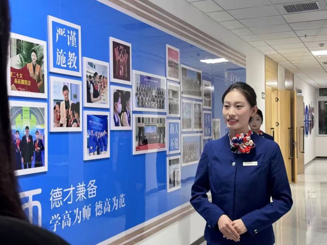 跟随着讲解员的脚步,新生们开启了这场充满知识与梦想的探索之旅。在参观过程中,讲解员们带领每位同学参观了实训中心问询处、值机办理处、安检处以及登机处等一整条完整的地服生态链,沉浸式体验了航空模拟舱,一同感受了客舱内的真实环境。通过实地参观和亲身体验,新生们不仅了解到登机的全部流程,更加体会到航空专业的独特魅力。