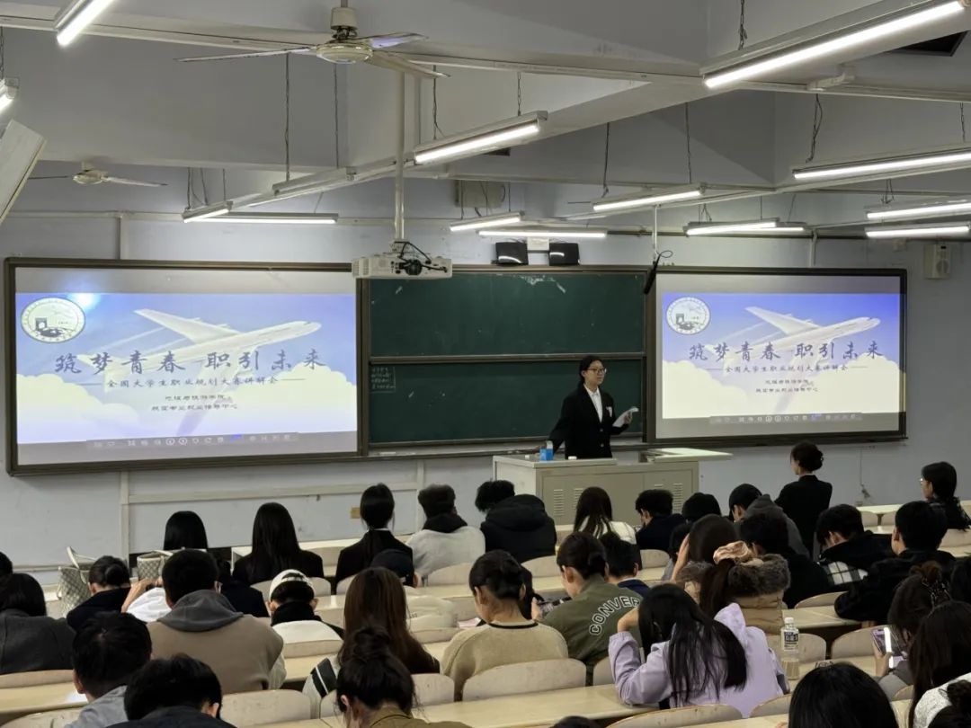 就业指导中心郝旭蝶根据航空专业特点和自身就业经验为同学们剖析职业规划要点难点。她以生动的案例将复杂问题逐一拆解,耐心解答同学们在规划中遇到的困惑问题,无论是职业选择的迷茫还是未来发展的担忧,都给予真诚建议。现场互动频繁,气氛热烈,同学们积极提问。
