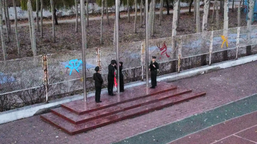 晨曦初露,朝霞漫天。国旗护卫队身着整洁的制服,脚踏坚定的步伐,向升旗台缓缓走来。全体师生庄严肃立,以昂扬的姿态表达自己对祖国的自豪与敬意。