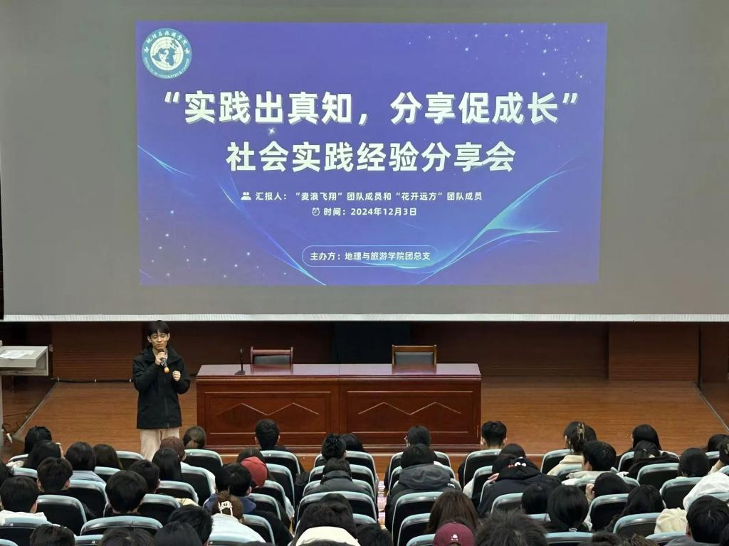 为贯彻落实党的二十届三中全会精神,增强新时代大学生社会实践活动实效,pp电子官网于12月3日晚上7时,召开了以“实践出真知,分享促成长”为主题的社会实践经验分享会,会议邀请了“麦浪飞翔”和“花开远方”团队成员做经验分享。