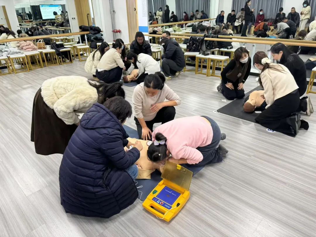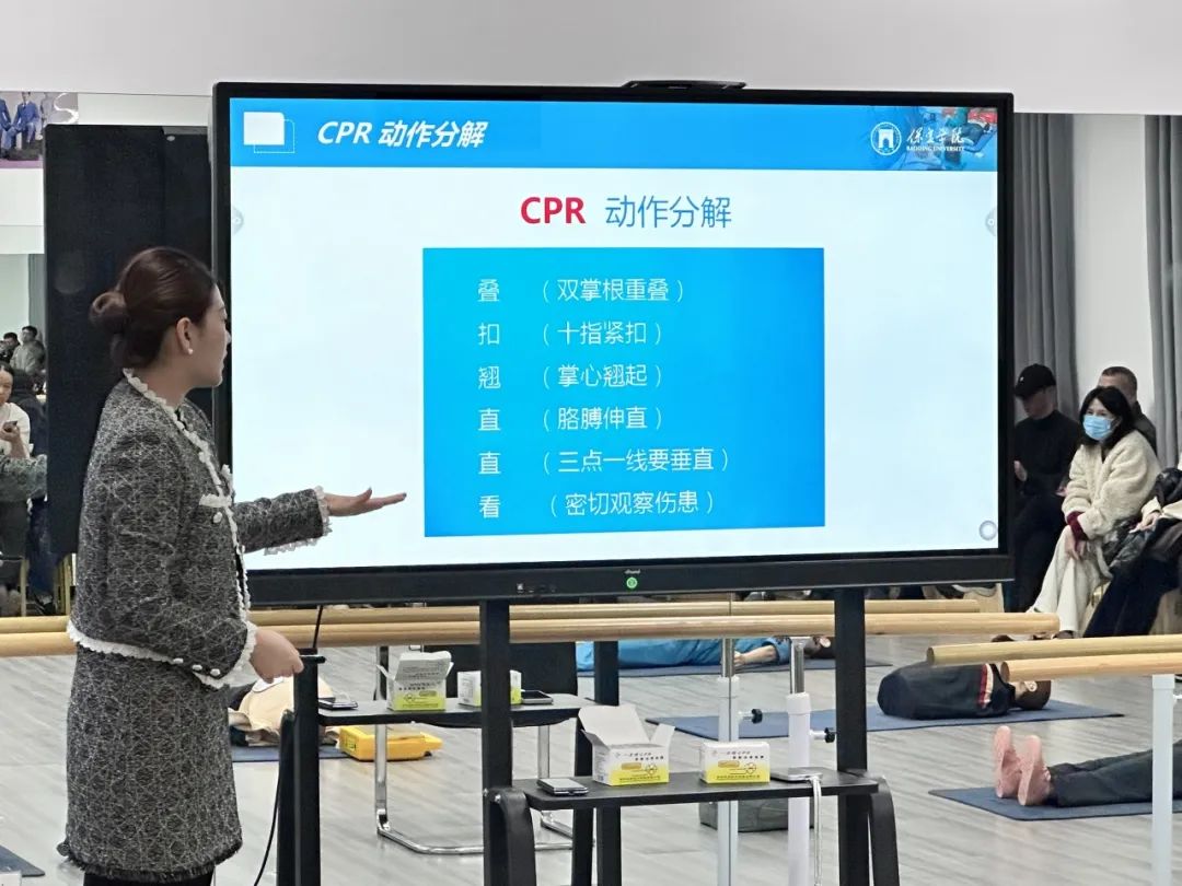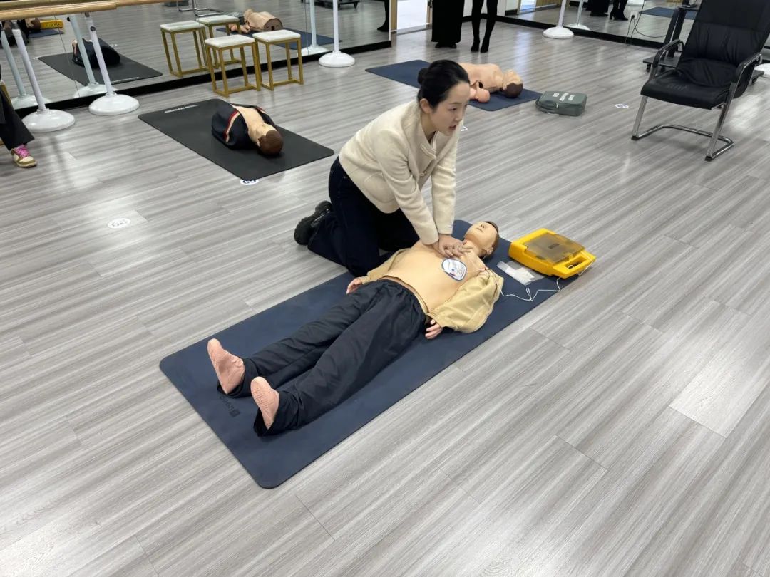 在理论讲解环节,详细介绍了心肺复苏的重要性、基本步骤及注意事项。具体展开了自动体外除颤仪(AED)的使用和心肺复苏术(CPR)的实操。