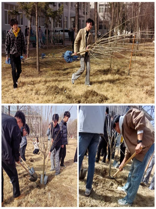 挥洒汗水,植树造林。师生们积极参与此次义务植树活动,手持铁锹,水桶和树苗,有序前往指定的植树区域,在工作人员的指导下,师生们分组协作,从挖坑、栽植、培土到浇水,每一道工序都一丝不苟,现场忙而不乱,气氛热烈而和谐。