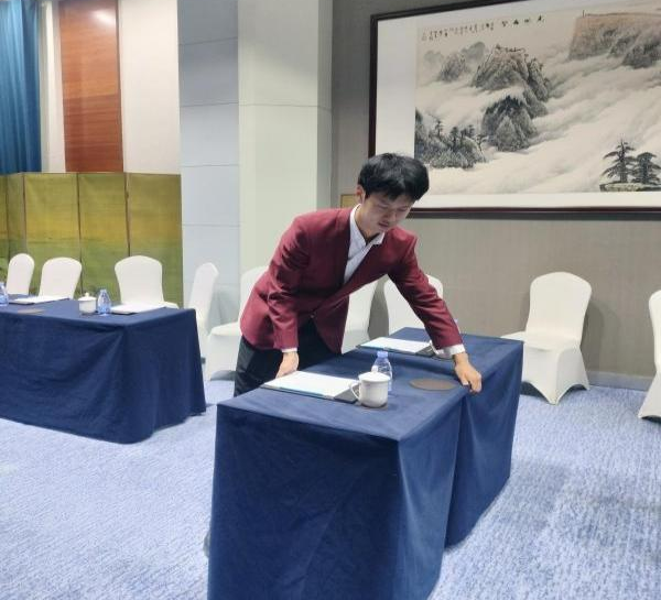 两会服务期间,“向阳花”志愿服务团队分工协作,承担了礼宾接待、会议保障、餐饮服务等多个岗位的工作任务。礼宾接待组身着统一制服,面带微笑,以规范而饱满的热情迎接每位代表委员,从仪态举止到接待流程均展现出专业风范。会议保障组秉持严谨作风,会前完成会场消杀、设施调试及席位卡校准等准备工作;会中全程跟进会议进程,及时为代表和委员们准备物料,确保各环节衔接顺畅。餐饮服务组细致规划餐前筹备,从餐具陈列到环境卫生均严格规范,依托全流程食品安全监管机制,在用餐高峰时段仍能保持服务高效有序,为代表委员营造了温馨舒适的用餐环境。