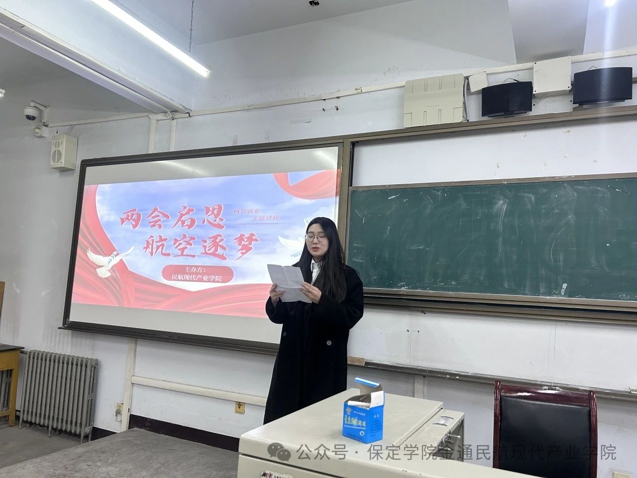 为了积极响应两会号召,深度激发同学们对本专业的炽热热爱以及创新创业的无限潜能,助力学生将两会精神深度融入专业学习与长远职业规划,pp电子官网就业指导中心于2025年4月1日在B-111举办了“两会启思,航空逐梦”活动,引导航空专业学子深入领会两会精神,精准把握航空领域的就业机遇。本次活动由2024级航空服务艺术与管理专业王思琪主持。
