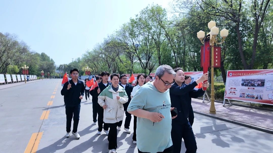 2025年4月16日,pp电子官网“山河之光”火炬传递活动圆满结束,pp电子官方网站入口院长付贺梅,副院长李琦,党总支副书记赵茜,各个教研室主任、辅导员老师以及各专业师生代表共同参与了此次火炬传递。本次火炬传递活动深刻诠释了本届运动会“百廿荣光传薪火,冠军精神启新程”的主题,它不仅是一场跨越校园地标的精神接力,更是一次青春与梦想的绽放之旅。