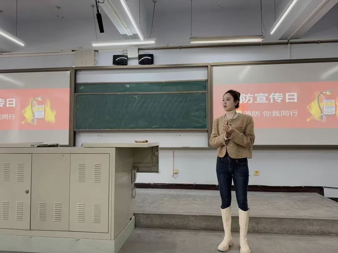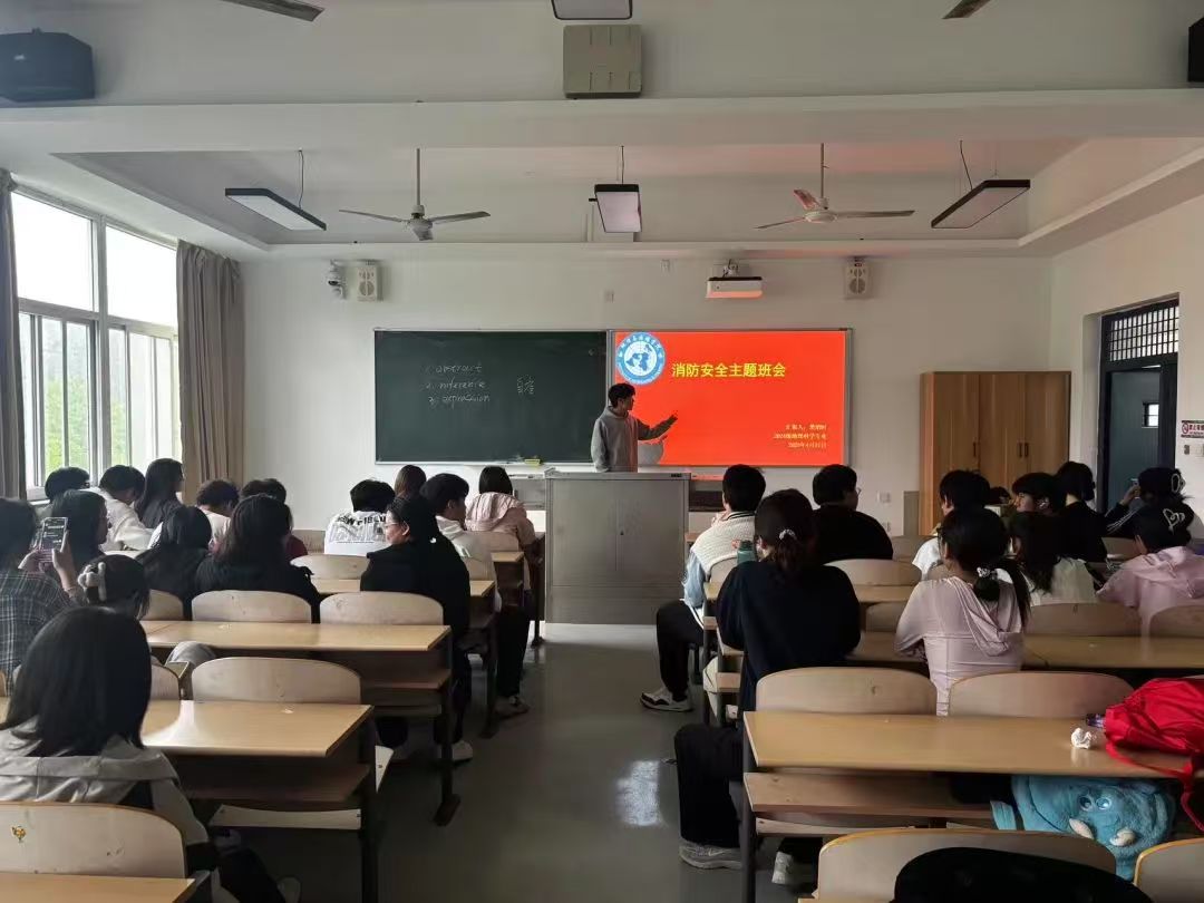 辅导员通过理论与实践相结合的方式为同学们讲解了“弯腰低姿捂口鼻”“避开电梯走楼梯”等黄金逃生法则,并引用《消防法》与应急预案逐一解答同学们的问题,强化知识记忆。班会结合真实案例中烈焰吞噬建筑、浓烟封锁逃生通道的场景,让在场师生深刻认识到火灾的残酷与无情。