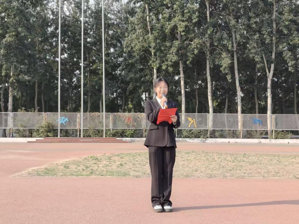 24级地理科学专业边泽洋作为学生代表发言。他提到:“回望百年,从五四运动的呐喊到脱贫攻坚的胜利,无数先辈以热血铸忠诚。如今,我校学子在西部支教中展现担当,让‘知行合一’的精神在国旗下闪耀。我们青年当以旗为引,将个人理想融入‘国之大者’。”他的话语中满是新时代青年与国同行的决心。