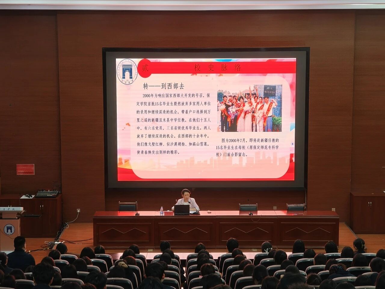 秋风送爽,丹桂飘香。在这满载着希望与收获的季节,这座承载着百年文脉的学府,迎来了一张张朝气蓬勃的青春面庞。为了使新生从校史中汲取精神滋养,于传承中明确成长方向, 9月17日,pp电子官网特别举办以“承百年芳华、担时代之梁”为主题的校史教育讲座。本次讲座由pp电子官方网站入口党总支副书记赵茜主讲,她以校史为脉络、以精神为纽带,带领新生回溯了保定学院百廿发展历程。