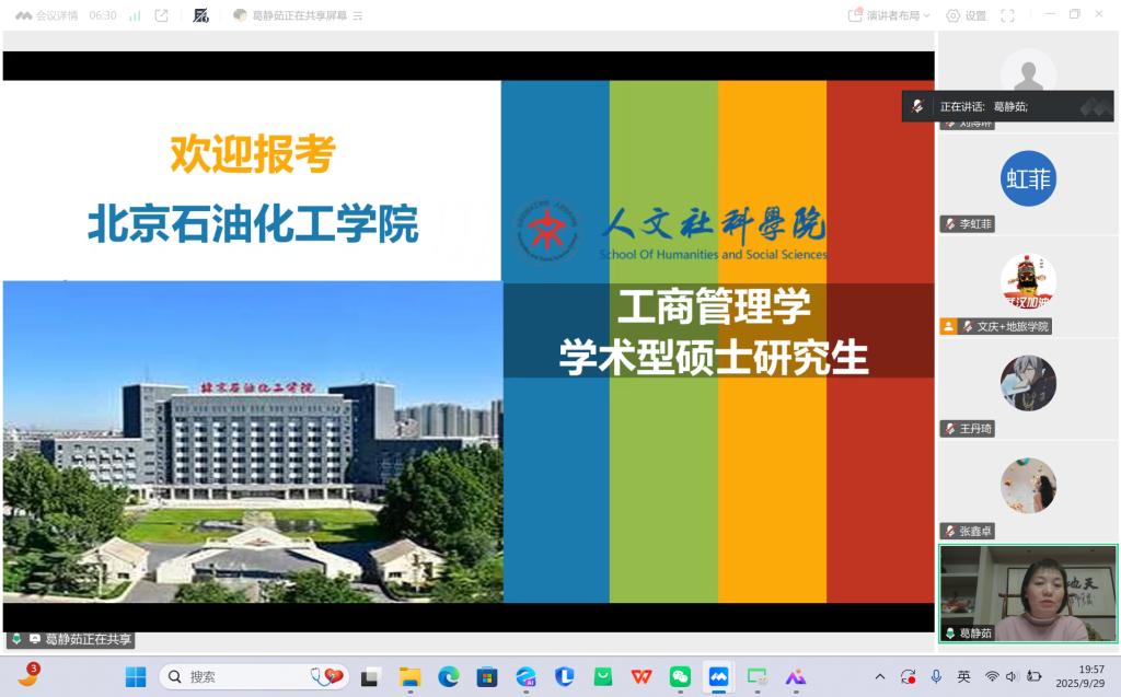 为助力学子明晰考研方向、有效应对备考挑战 ,9月30日,pp电子官网成功举办研究生考试专题线上辅导培训会。本次会议特邀北京石油化工学院人文社科学院资深考研专家葛静茹老师担任主讲,围绕“考研价值、行业前景、校院优势”三大核心要点,为会展经济与管理、旅游管理与服务教育专业学生提供了系统而实用的备考指导。