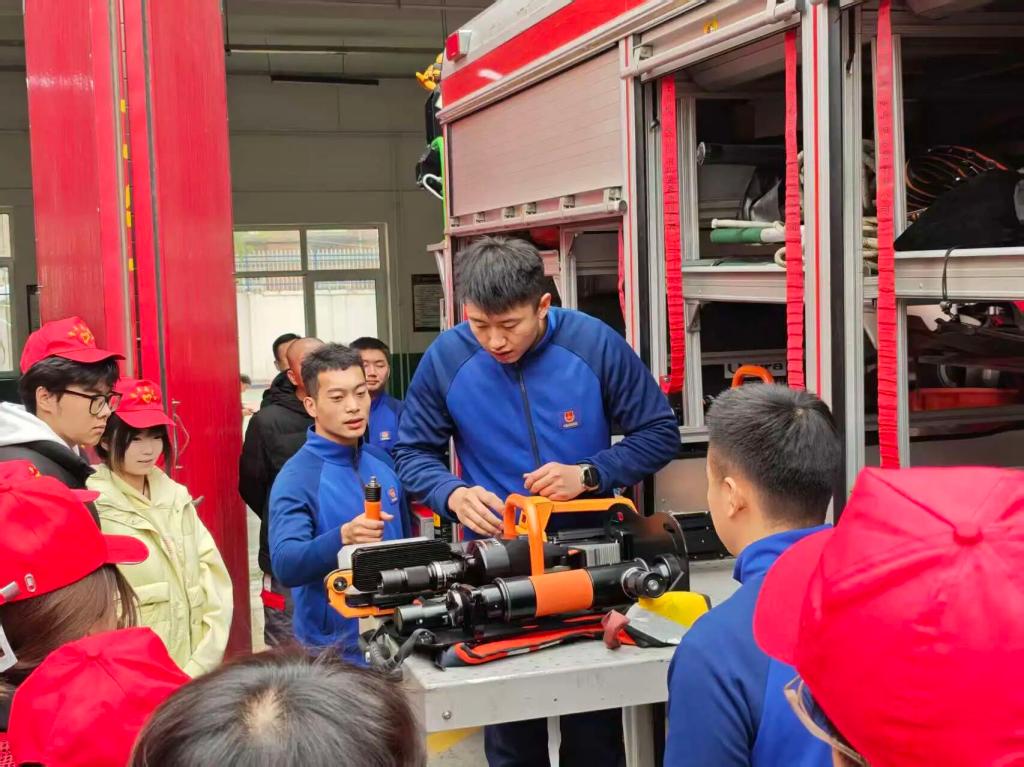 理论讲解结束后,师生们在消防员的引导下,参观了消防车辆及各类专业器材装备。高大的消防车、功能各异的破拆工具、不同形态的救援头盔……这些以往只能在荧幕中见到的装备,激发了同学们浓厚的兴趣。消防员细致讲解了各类器材的功能与用途,并现场演示了液压扩张钳、无齿锯等器材的操作方法,还热情邀请师生动手尝试。大家在专业指导下积极参与、亲手操作,逐步掌握了器材使用的关键技巧,切实提升了扑救初起火灾的能力。