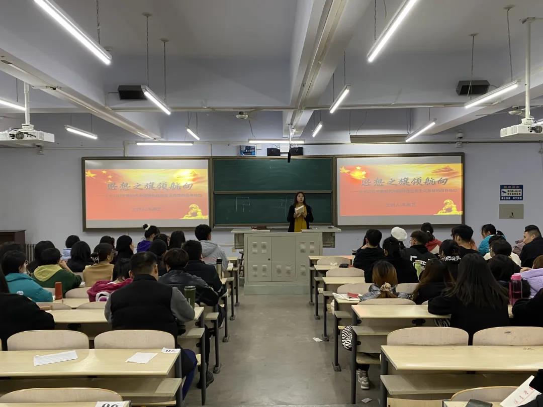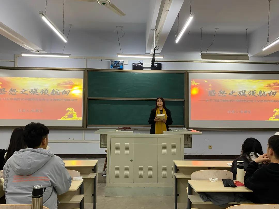 2021年11月5日下午7点,在B楼109教室,pp电子官方网站入口党总支书记朱燕芝给预备党员和积极分子讲授关于《习近平新时代中国特色社会主义思想学习问答》的党课。