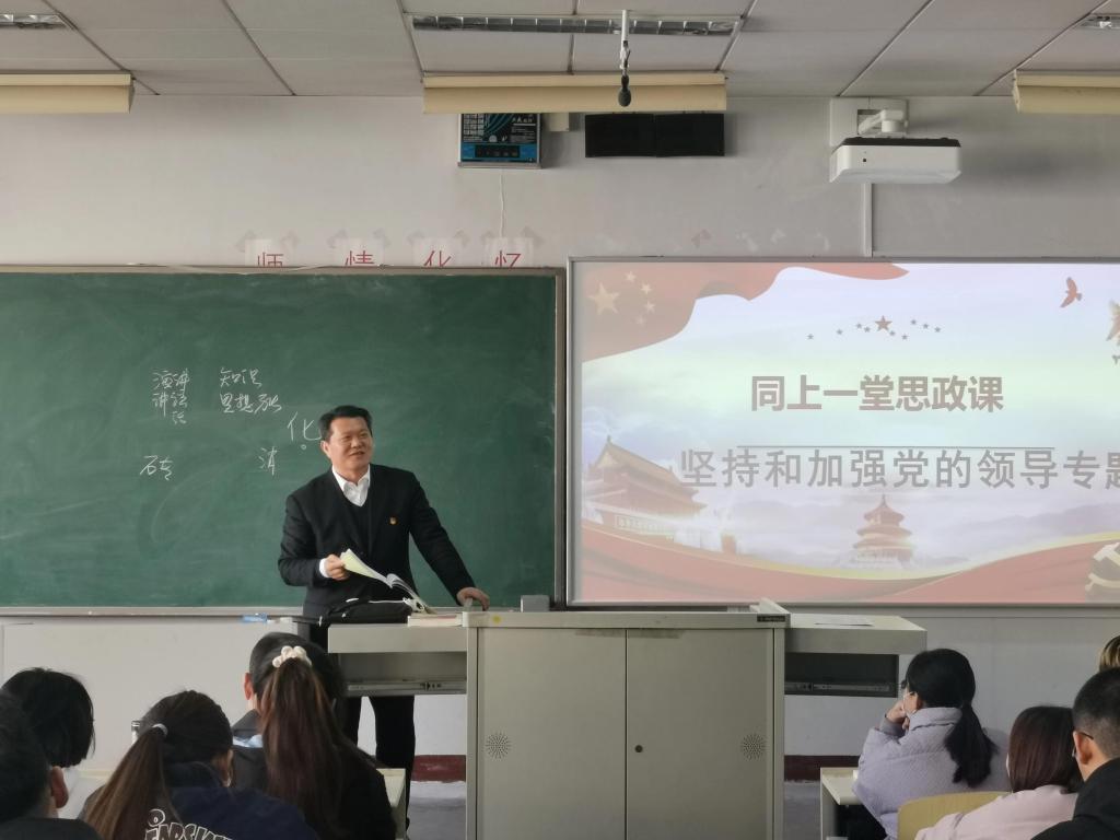 12月6日上午,保定学院党委常委、副校长赵其国与马克思主义学院老师一道以《坚持和加强党领导》为专题,为pp电子官方网站入口师生“同上一堂思政课”。