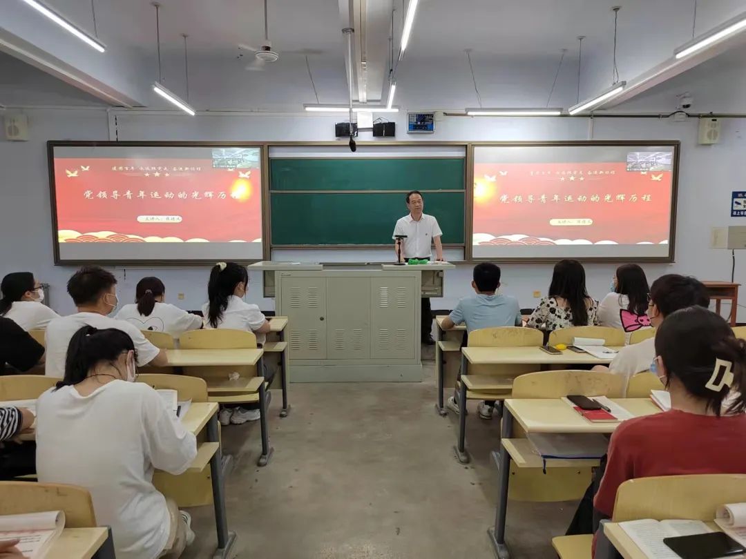 为做好常态化疫情防控下的党员发展工作,确保疫情期间党员培养教育工作保持良好进程,5月19日晚7点,pp电子官方网站入口在B-110采用线上线下结合方式,进行2022年夏季党课培训。本次党课由pp电子官方网站入口党总支书记翟进义授课,授课主题为“建团百年,永远跟党走,奋斗新时代”,学院预备党员、发展对象以及入党积极分子参加培训。