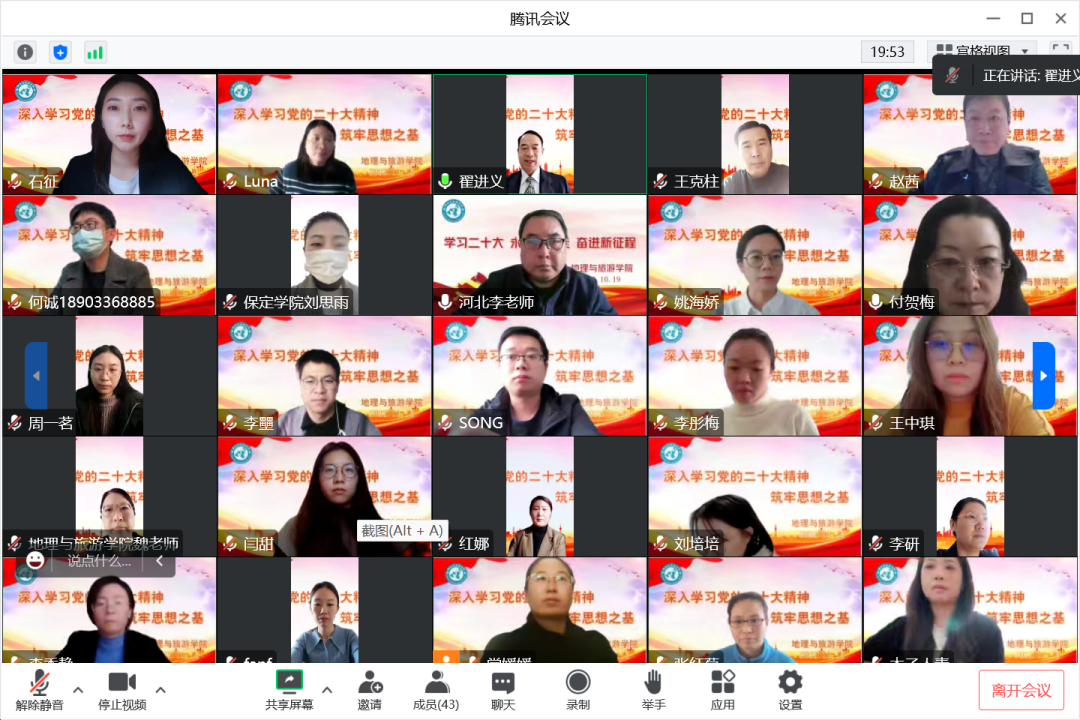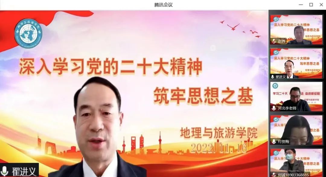 翟进义书记对党的二十大会议议程、党的二十大重要意义进行了深入解读;介绍了党的二十大的主题、主要成果、党的二十大报告起草过程。要学习贯彻党的二十大精神,自信自强、守正创新,踔厉奋发、勇毅前行,为全面建设社会主义现代化国家、全面推进中华民族伟大复兴而团结奋斗。翟进义书记强调,大会主题明确宣示了中国共产党和中国人民在全面建设社会主义现代化国家新征程上举什么旗、走什么路、以什么样的精神状态、朝着什么样的目标继续前进;强调主题的目的是鼓舞和激励全党全国各族人民勇于变革、勇于创新,万众一心、团结奋斗,奋力开创社会主义现代化建设新局面。党的二十大回顾了过去五年的工作和新时代十年的伟大变革,阐述了开辟马克思主义中国化时代化的新境界、中国式现代化的中国特色和本质要求等重大问题,对全面建设社会主义现代化国家、全面推进中华民族伟大复兴进行了战略谋划。