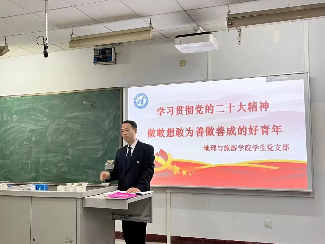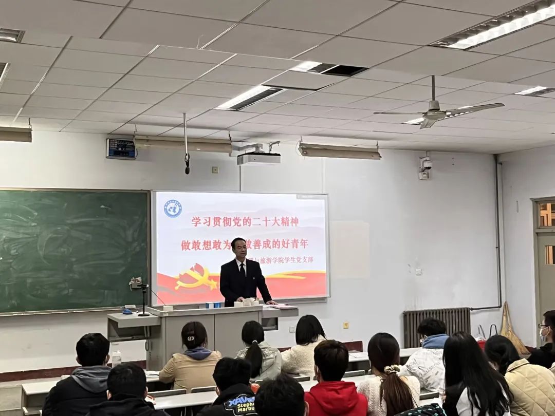 翟进义书记在此次党课中带领同学们学习了党的二十大报告,提到在党的二十大报告强调“青年强,则国家强”,指出“当代中国青年生逢其时,施展才干的舞台无比广阔,实现梦想的前景无比光明”,对广大青年提出了“立志做有理想、敢担当、能吃苦,肯奋斗的新时代好青年”的重要要求,充分体现了党对青年一代的亲切关怀和殷切期待,为青年一代健康成长指明了努力方向。学习贯彻党的二十大精神,牢记习近平总书记的嘱托,在党的领导下,以新时代好青年应有的姿态,奋进新征程,诠释新使命,创造新业绩。