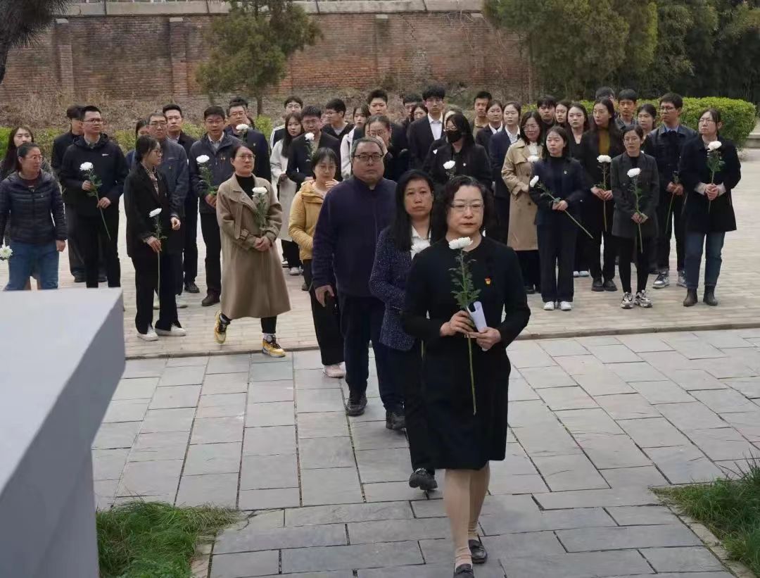 在“七·六”殉难烈士纪念碑前,全体师生党员,着装整齐,手持白花,肃立默哀,向革命先烈致以崇高的敬意。院长付贺梅激励师生们:缅怀先烈,不忘来时路,传承先烈精神,汲取奋斗力量,要砥砺担当,勇担新时代使命。