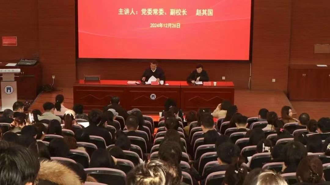 课上,赵其国从深刻学习领悟习近平文化思想的哲学意蕴,引领高校文化建设;学习贯彻党的二十届三中全会精神,高举改革开放旗帜;深刻把握中国特色社会主义教育的三大属性,践行全国教育大会要求;全面认识我国经济发展的成绩和潜能四个方面宣讲。他强调,学习贯彻党的二十届三中全会精神、学习领会习近平文化思想、深入践行全国教育大会要求以及全面落实中央经济工作会议精神,是我们当前和今后一个时期的重要任务。一要落实党的二十届三中全会精神,积极探索适合学院新质生产力发展路径,深化高校教育教学全面改革;二要坚定不移地以习近平新时代中国特色社会主义思想为指导,将习近平文化思想融入校园文化建设和思想政治教育,增强师生文化自信,推动新时代高校文化建设;三要落实建设教育强国要求,弘扬教育家精神,强化师德师风教风学风建设;四要紧密结合社会发展需求,优化专业发展,服务地方经济,提供有力人才支撑。